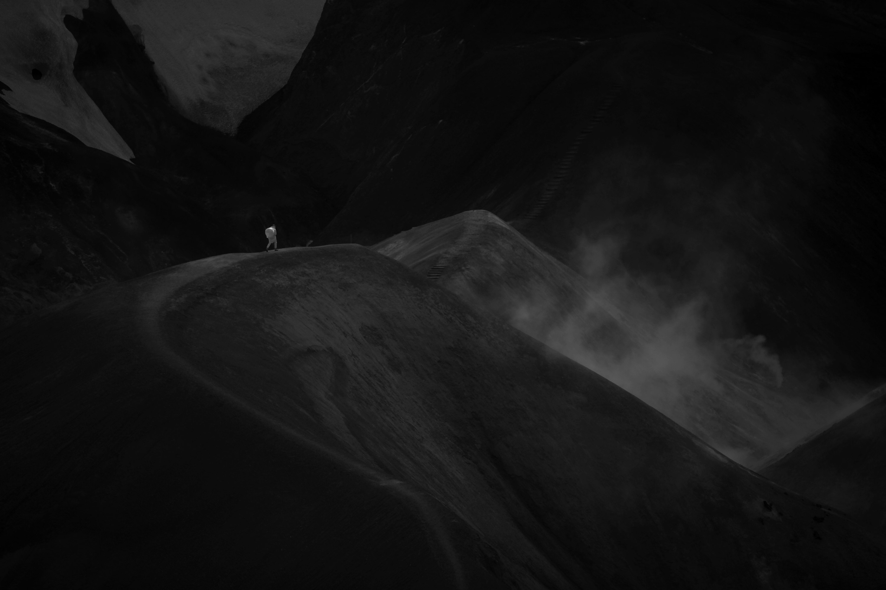 A completely different atmosphere is evoked in the program part Iceland in the Eye. The key words here are tranquil and alienating. This certainly applies to The Heart of a Tree (2020), shot in beautiful black and white. Three human figures in white suits descend into a glacier landscape. It could just be another planet. From a great distance, the camera follows the movements of the cautiously moving group, which seem to harvest oxygen in billowing dust bags.