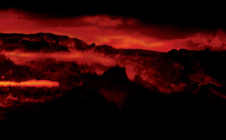 ‘Clare Langan’s post-apocalyptic trilogy of films, Forty Below,1999, Too Dark for Night, 2001 and Glass hour, 2002, individually and collectively offer us visions of a future in which the forces of nature appear to have overwhelmed the human hold on the planet. The causes of environmental catastrophe are never specified, but there is no doubting the fact of catastrophe. In the most recent film, Glass hour, a hapless, vulnerable figure is glimpsed moving through a simmering, volcanic landscape. There is no straightforward linear narrative, but a cumulative, compelling sense of a huge, industrialised environment being engulfed by a vast lava flow. All this is conveyed in the form of shots of molten, seething terrain, of abandoned and crumbling factory installations – and of what looks like a domestic structure bursting spontaneously into flame as the lava approaches.’ Aidan Dunne 2003
